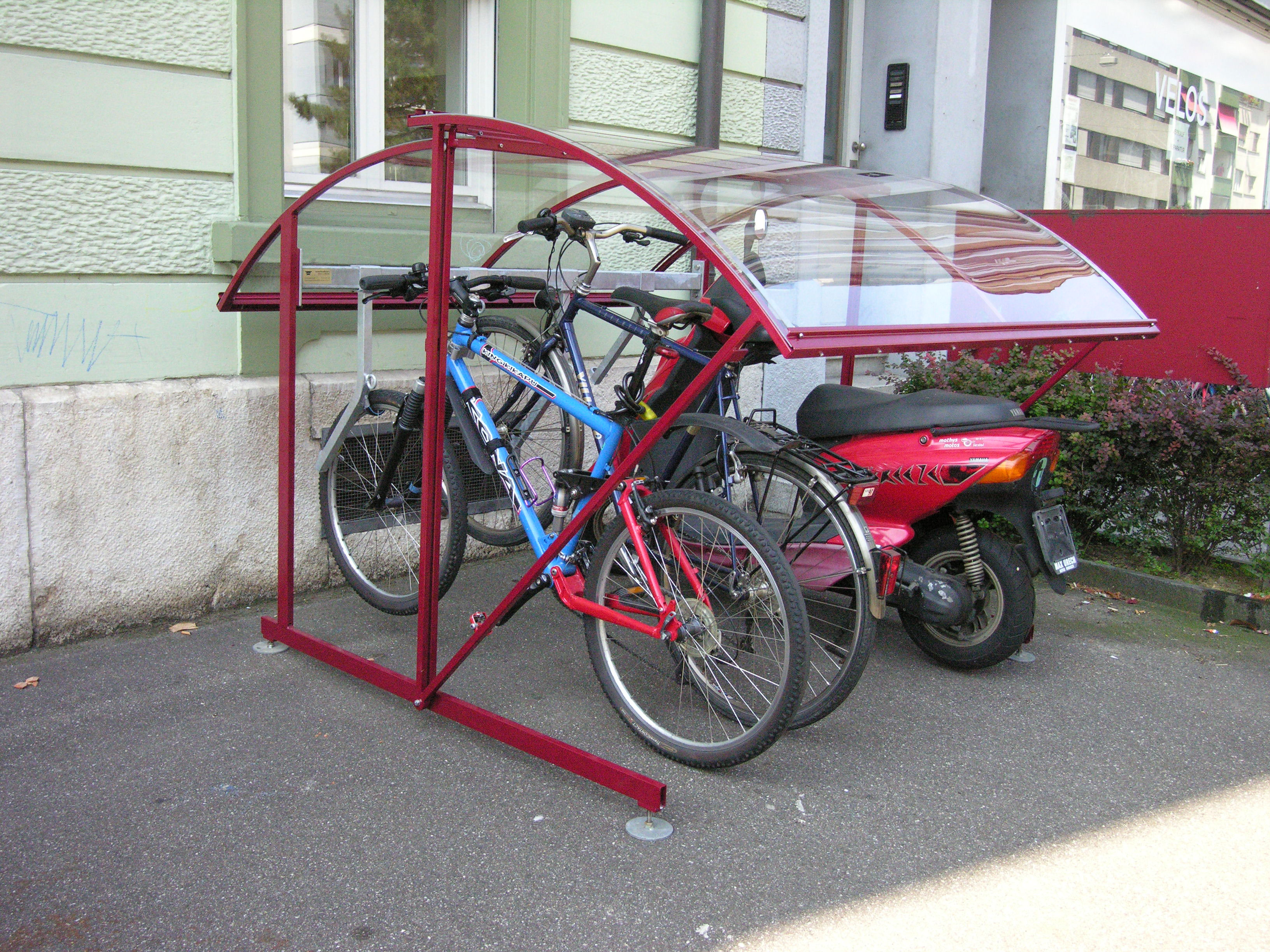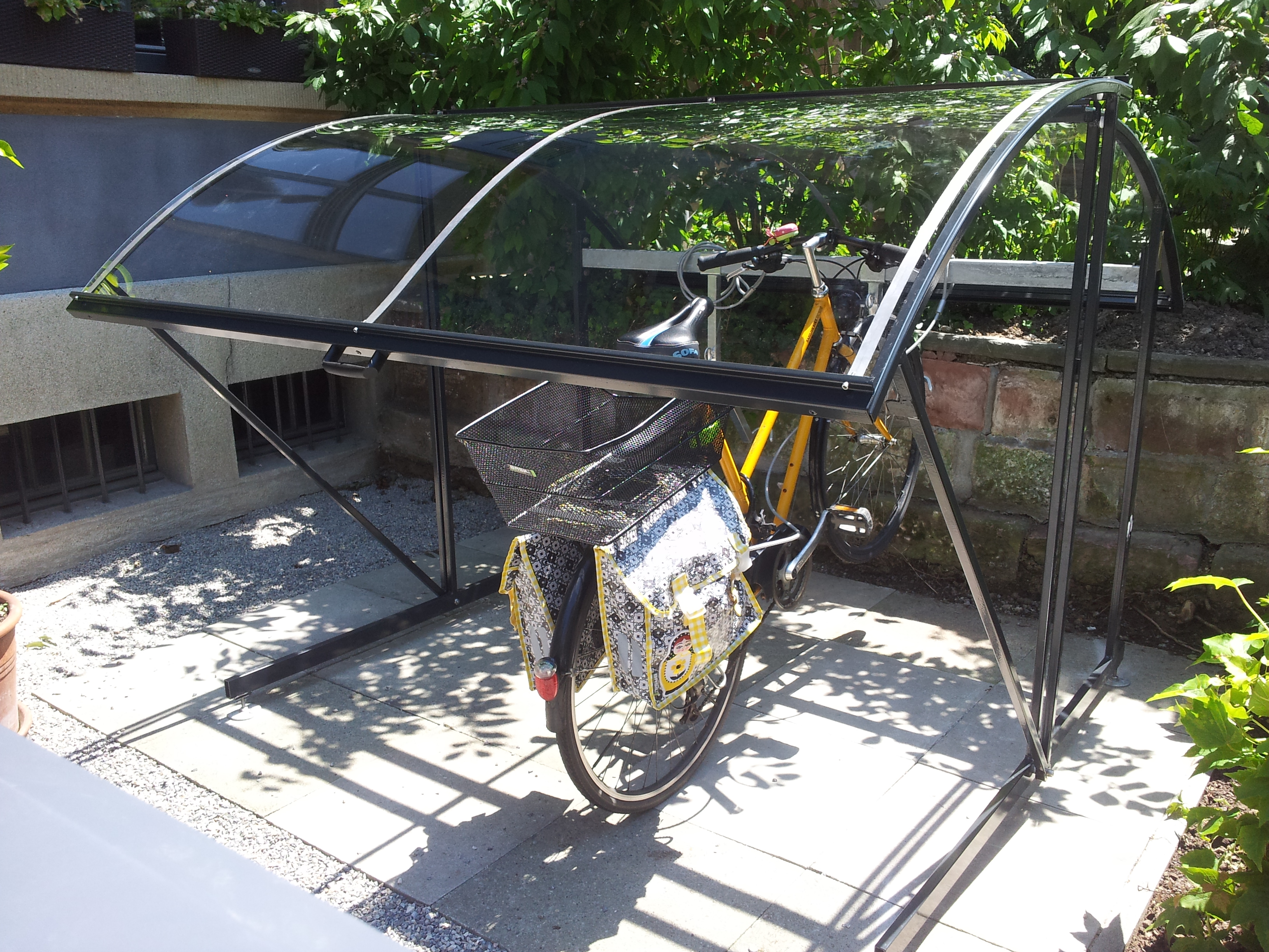 En option, le support de vélo HE ou BSE et des parois latérales en polycarbonate incassable peut être appelé